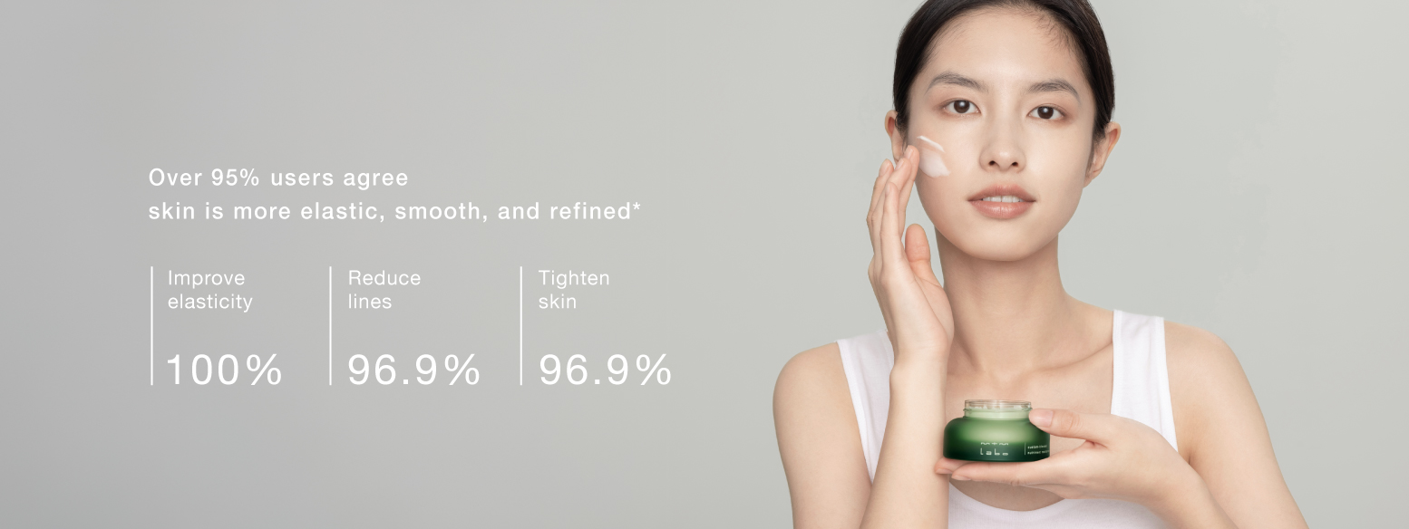 This moisturizer has a fine, non-greasy texture that is easily absorbed by the skin. The ingredients help stimulate collagen regeneration. 100% users agree it improves skin elasticity and increases smoothness*; 96.9% users agree the moisturizer effectively reduces fine lines, resulting in firmer skin*.