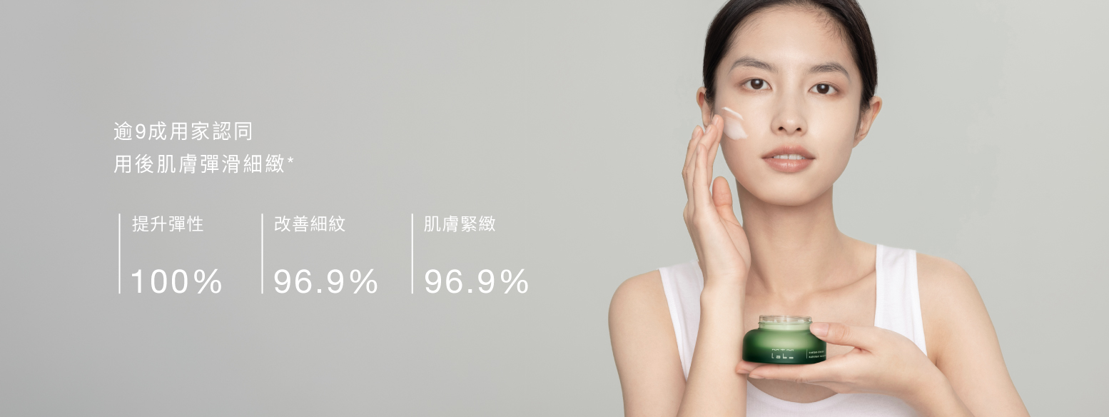 面霜質地幼細不黏膩容易被肌膚吸收,成分有助刺激膠原蛋白再生,100% 用家同意能提高肌膚彈性並能增加肌膚滑感*;96.9% 用家同意面霜有效改善面部細紋,令肌膚更緊緻*。