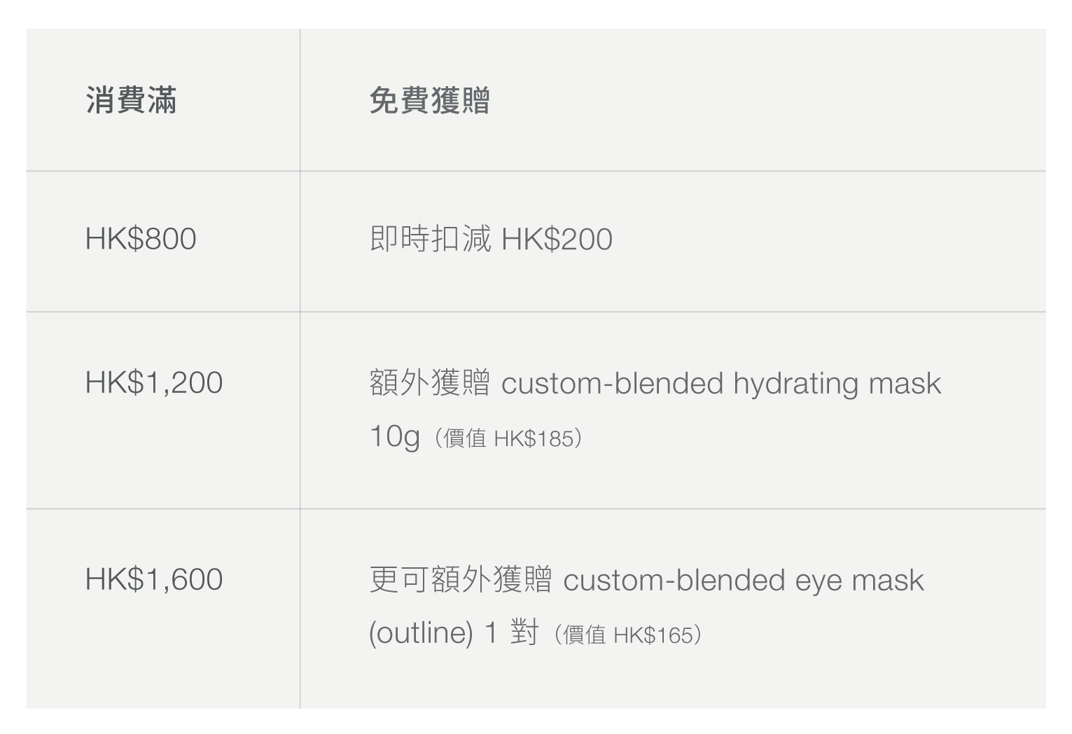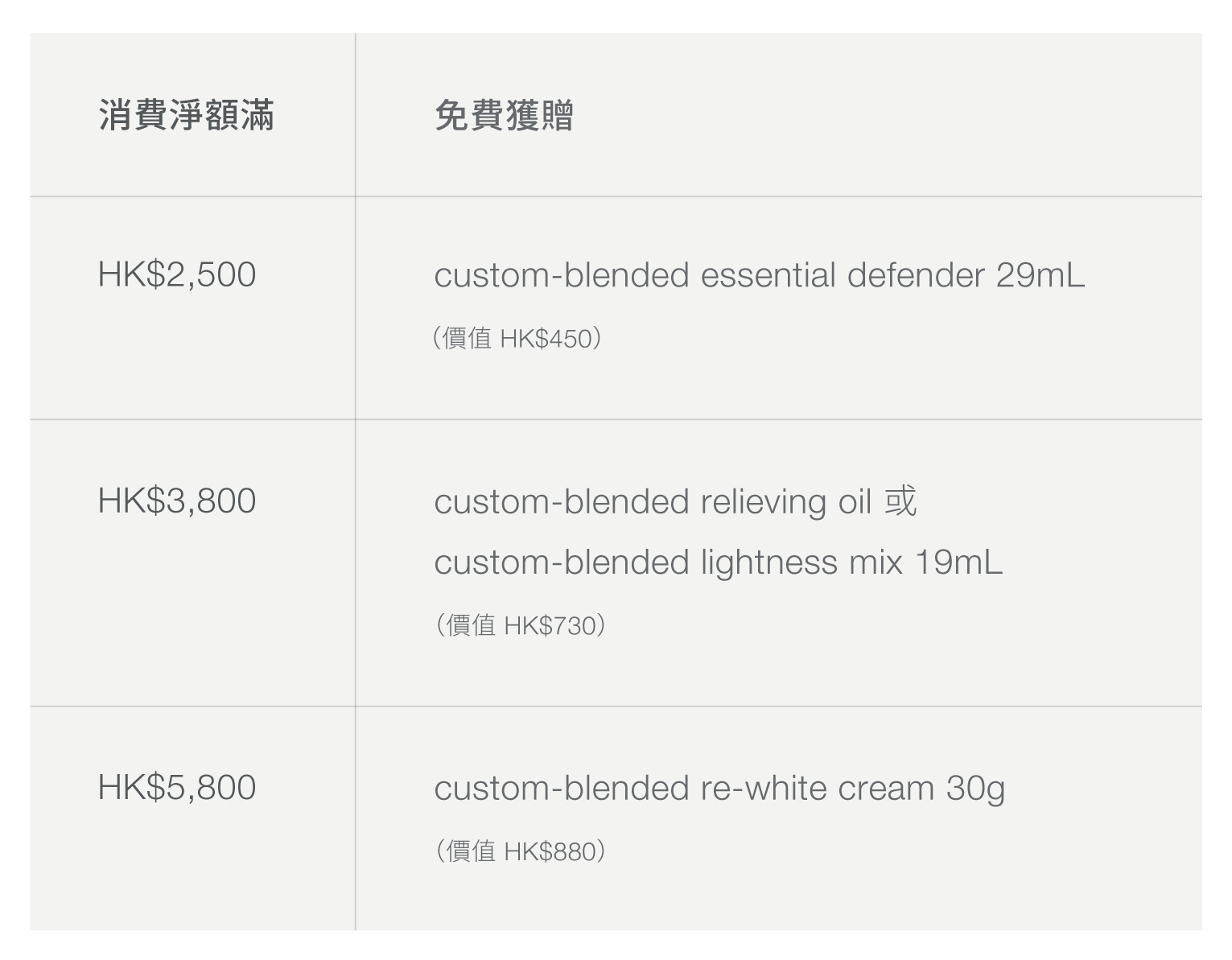 消費滿HK$3,980 即享 HK$1,589 禮遇,包括: