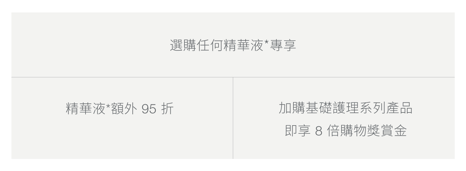 選購指定精華*,即可以 5 折加購 custom-blended re-white essence。