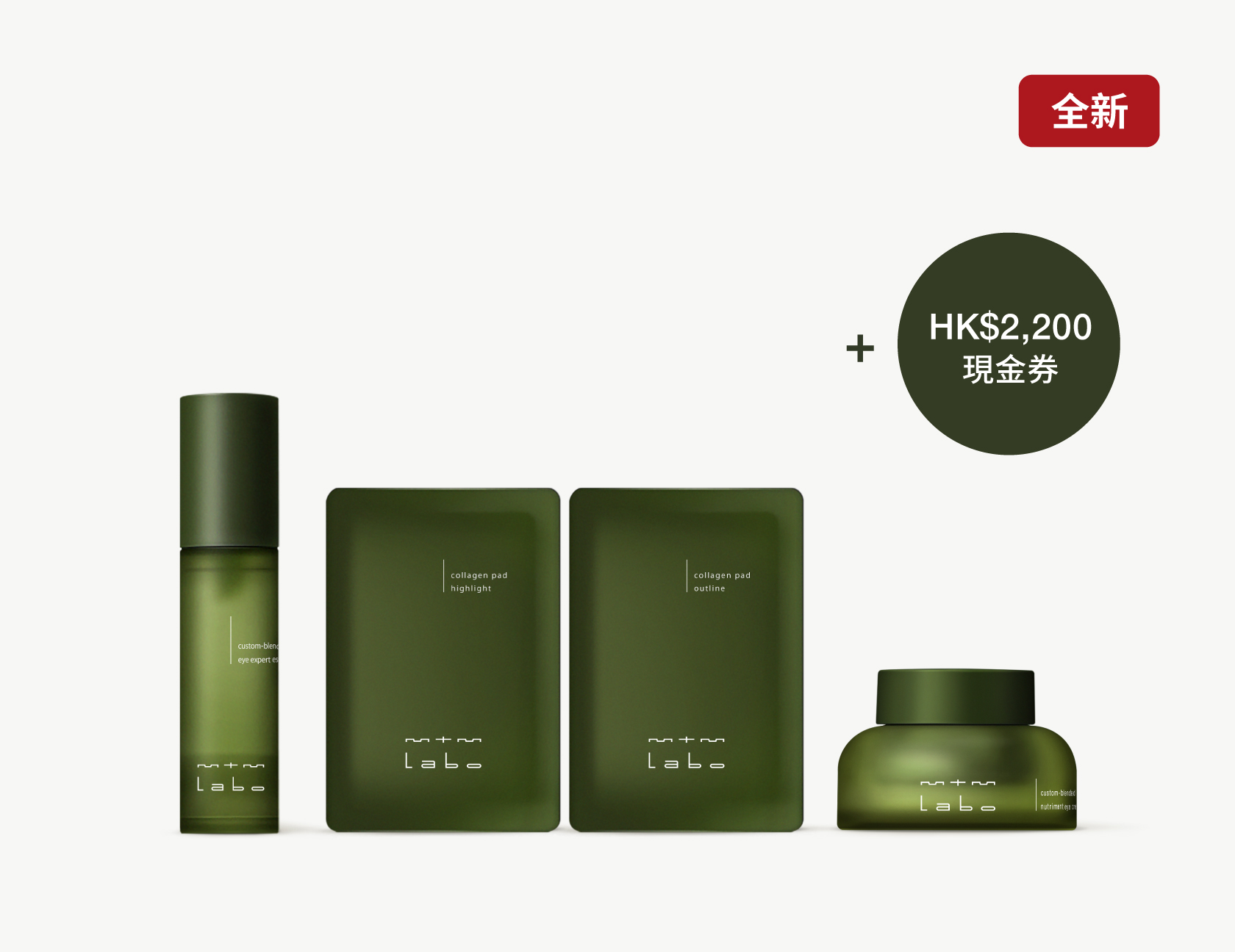 獲獎無數的 custom-blended eye mask 特別融入「選配」和「調配」概念,全新設計兩款「選配」collagen pad – outline 及 highlight,透過膠原蛋白和針對性配方,分別解決眼部皺紋及黑眼圈兩大常見煩惱,根據你的眼部需要,選配最合適的眼膜;搭配以 [ 量膚定制 ] 原液「調配」的 custom-blended eye expert essence,全面提升眼部修護效果,達致針對性的「一人一方」專屬護膚方案。只需持續使用 2 周*,明顯減淡眼周幼紋及提亮暗啞;4 周#極致提升﹑亮白﹑緊緻及滋潤眼周。