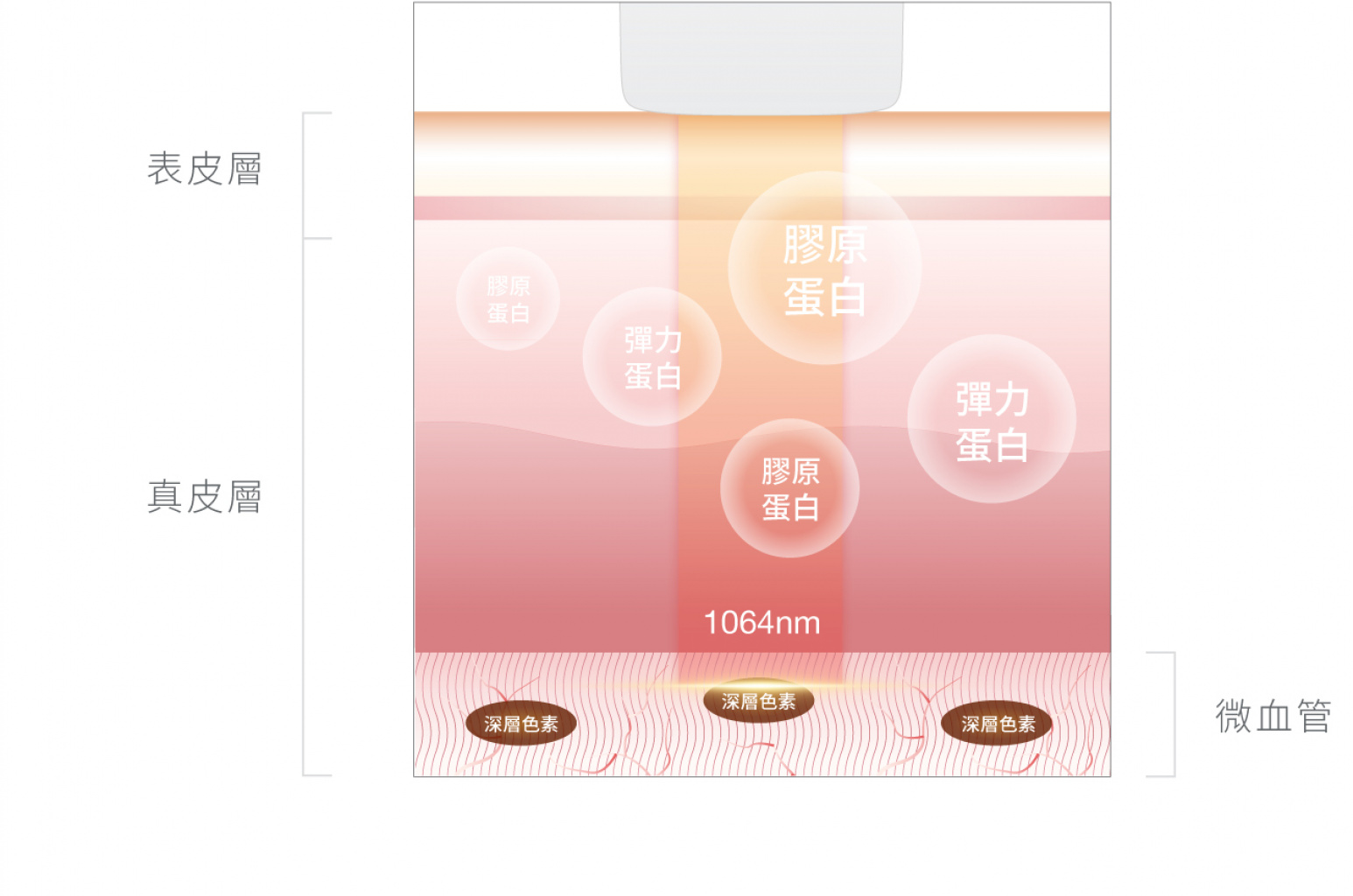 約 28 天,1064nm Q-Switch 直達真皮層,分解深層色素,透過細胞代謝將色素減淡,同時刺激膠原蛋白新生,提升膚質,細緻毛孔。